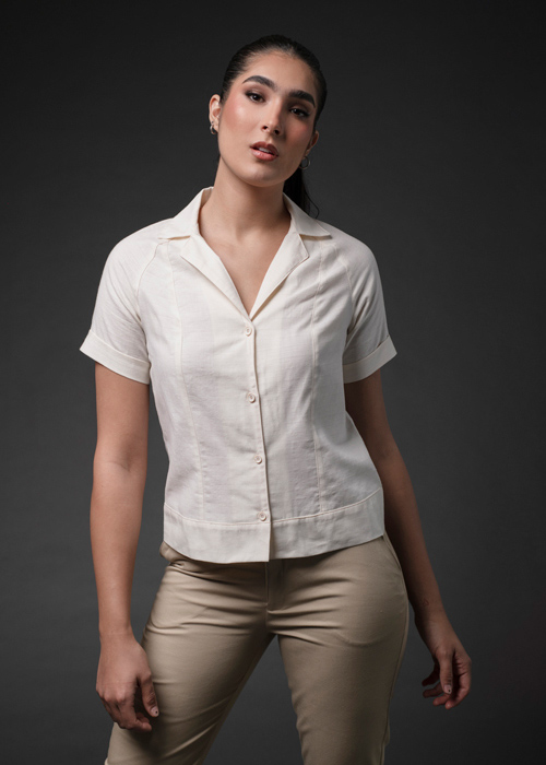 Camisa/Blusa Habana BIBO: Estilo Lino para Uniformes Casuales Laborales
