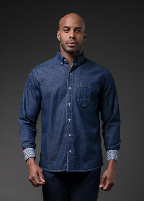 Camisa Mezclilla Elite Caballero BIBO: El Estilo Urbano 100% Algodón con Detalles de Contraste (Línea ÚNICO)