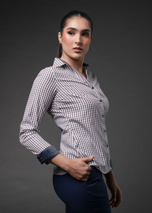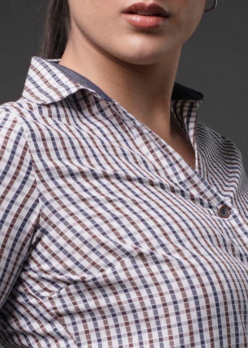 La Camisa/Blusa Toscana es la definición del clásico europeo en la moda corporativa. Perteneciente a la exclusiva Línea ÚNICO, esta prenda proyecta una imagen de pulcritud y autoridad con su patrón a cuadros (Azul Café) y sus sofisticados detalles. Está confeccionada con una mezcla de 43% Algodón y 57% Poliéster.